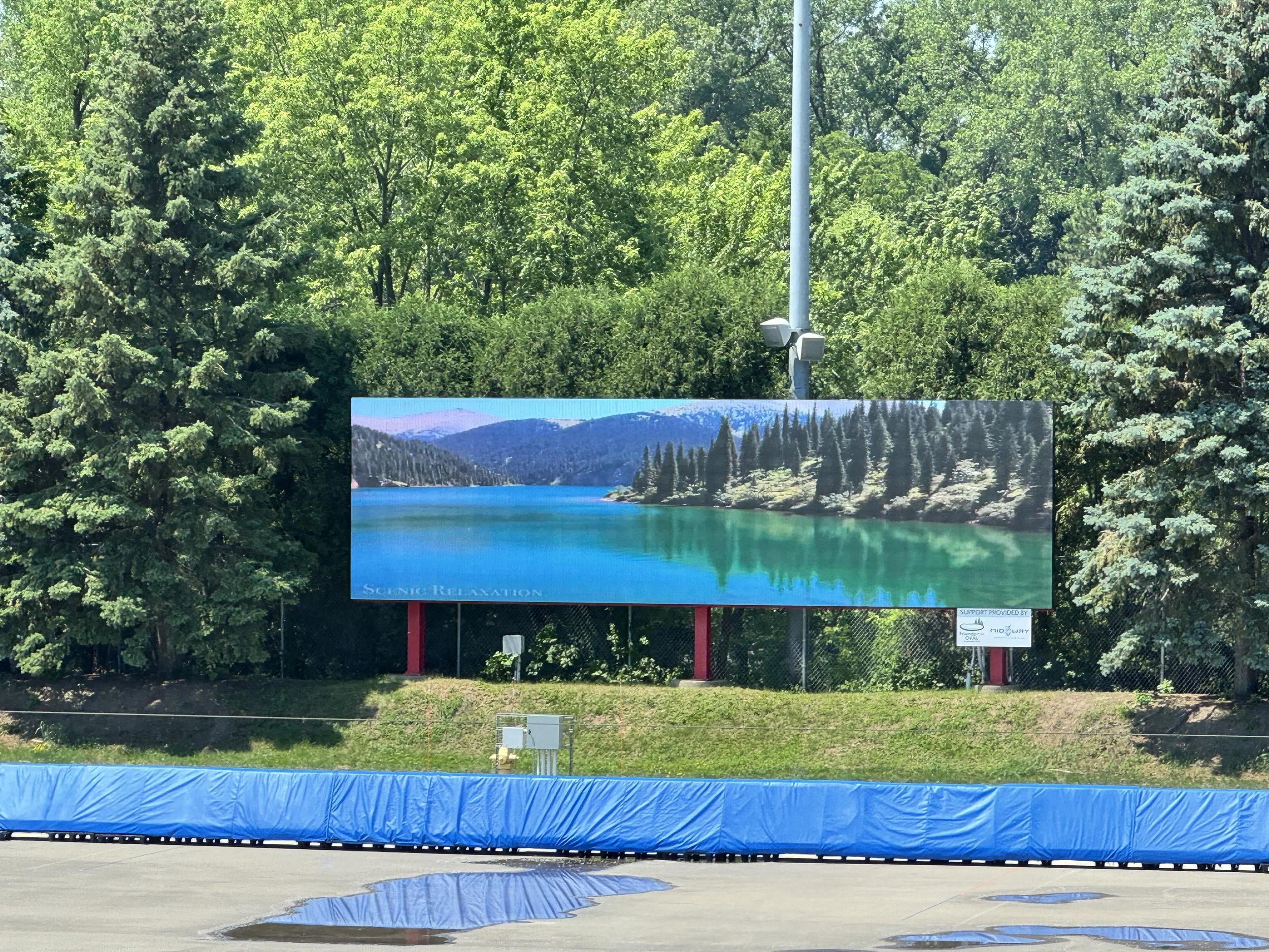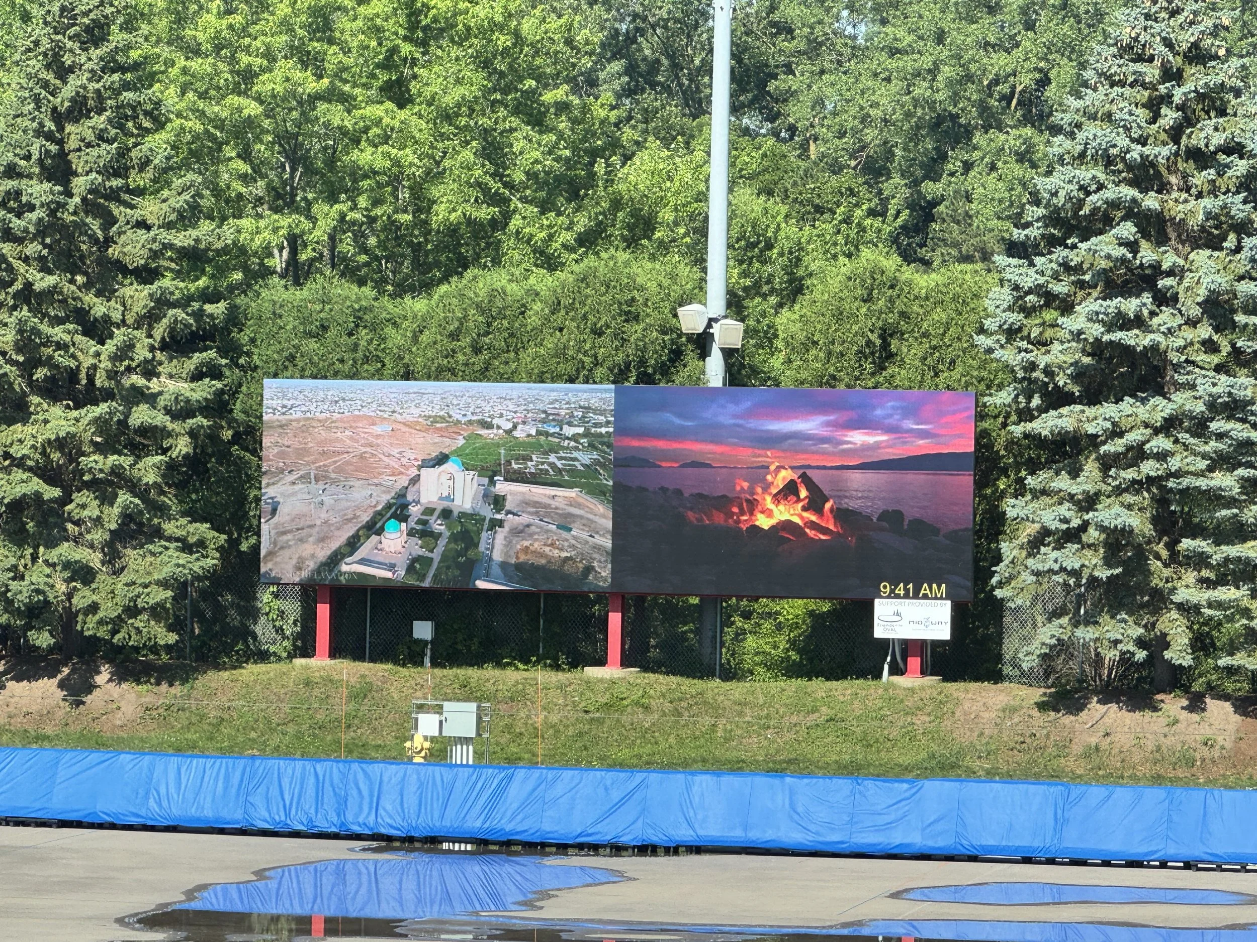 - Oval Scoreboard (39' W x 11' H) is fully integrated into the overall system.
